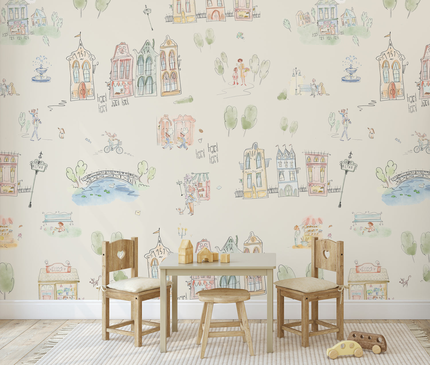 Alice is a Cornwall based illustrator known for her whimsical, story driven style. Her work blends warmth, imagination, and subtle detail, creating richly layered worlds that feel both playful and timeless. Alice is the artist behind our Métropole wall mural, bringing a charming cityscape to life with her distinctive hand and narrative touch.
