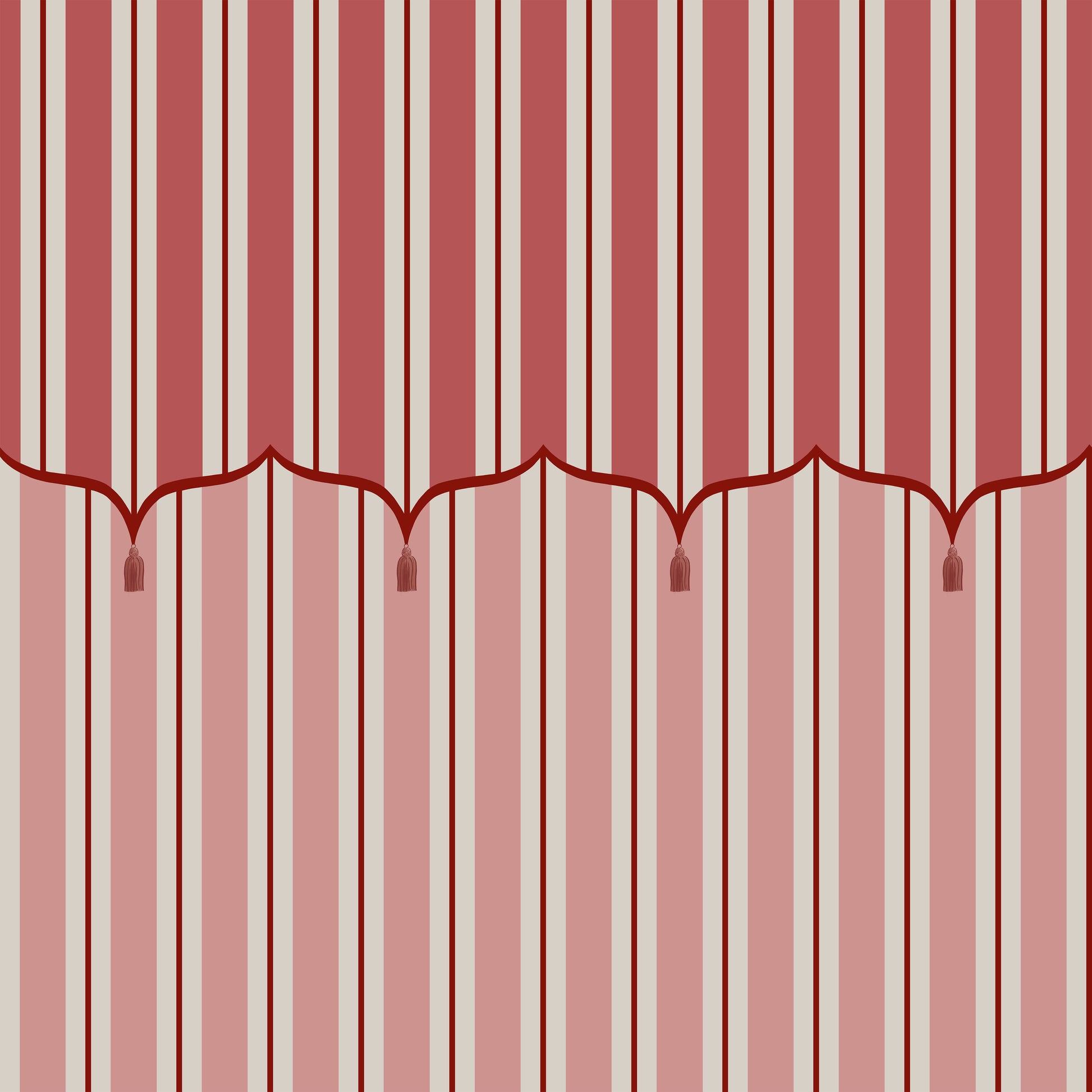 Step right up! Bring a touch of playful nostalgia to your space with our Funfair Tent Stripe wallpaper. Inspired by the charm of vintage fairgrounds, Funfair features bold stripes in warm red, pink, and cream, topped with a whimsical scalloped border that recalls the joyful energy of carnival tents.