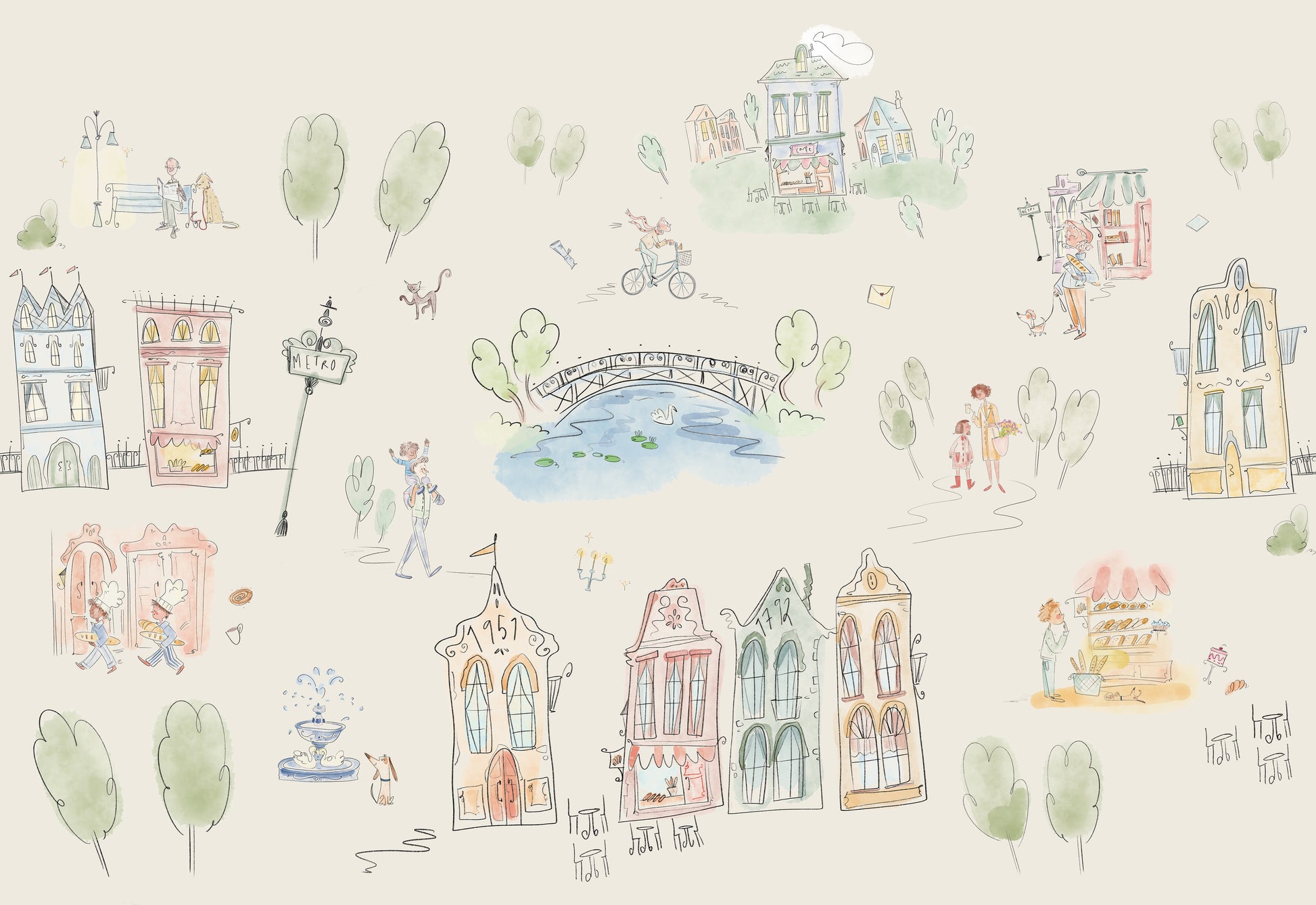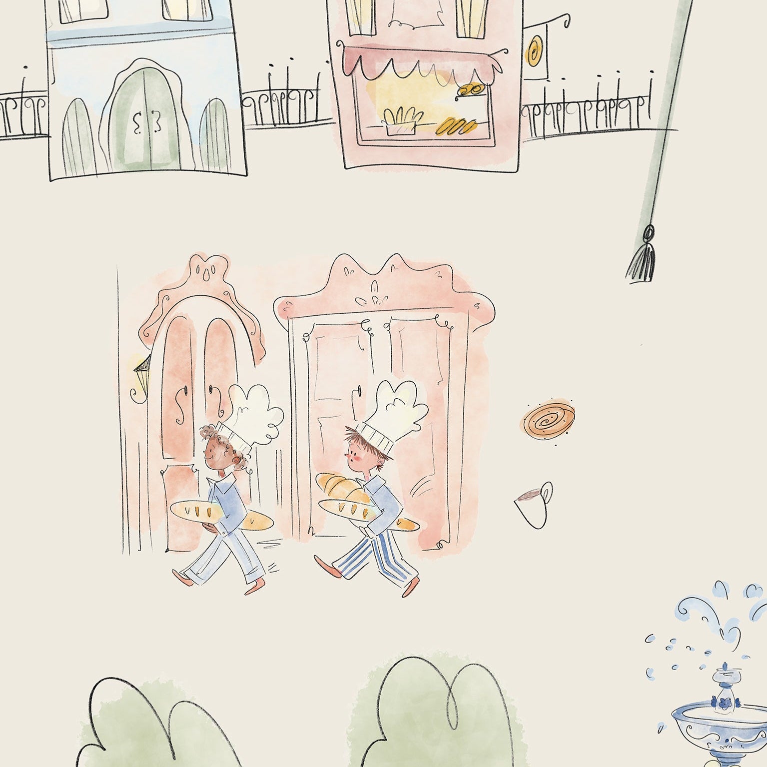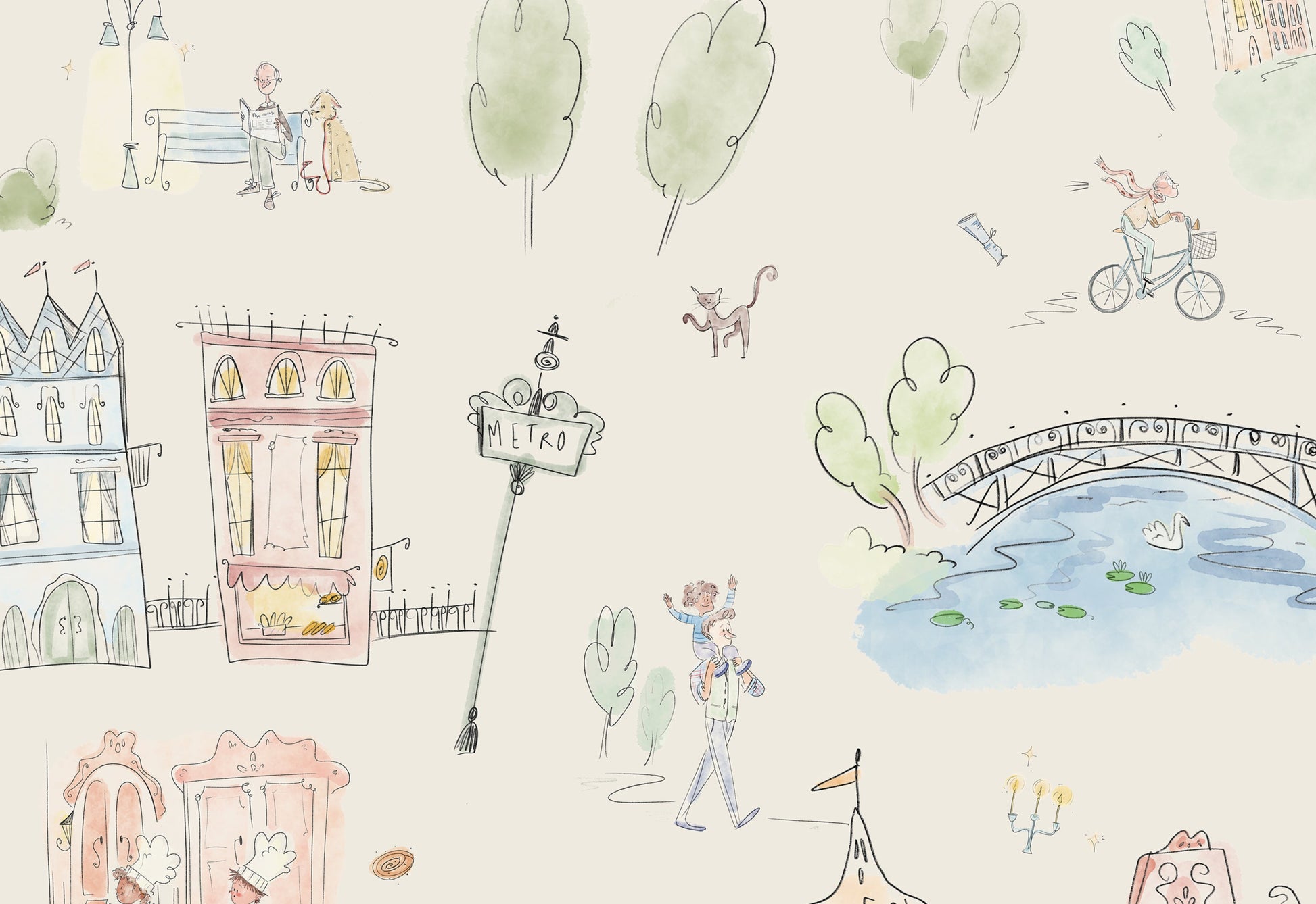 The Mètropole Wall Mural is a collaboration from In Good Fun and illustrator Alice Larsson of Alistrations. Inspired by Alice's beautiful children's book artwork and lifestyle doodles, this mural showcases a whimsical cityscape complete with bookshops, bakeries, and families hand in hand. Created with watercolors in Alice's signature style, Mètropole is the perfect backdrop for a magical, European inspired childhood. Pre-pasted, removable peel and stick and traditional wallpaper application options available.