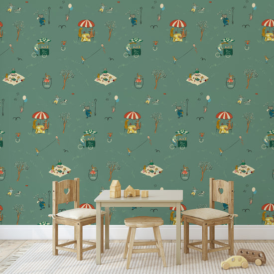 Parks is a collaboration from In Good Fun and illustrator Heidi de Leon of Hello Lucie Co. Inspired by the iconic artwork of Ludwig Bemelmans and his murals in the Carlyle Hotel, this print showcases whimsical animals enjoying a day in the park. Hand painted and cheerful, these illustrations create the perfect kid's room backdrop for a magical childhood. Removable peel and stick, pre-pasted, and traditional wallpaper application options available.