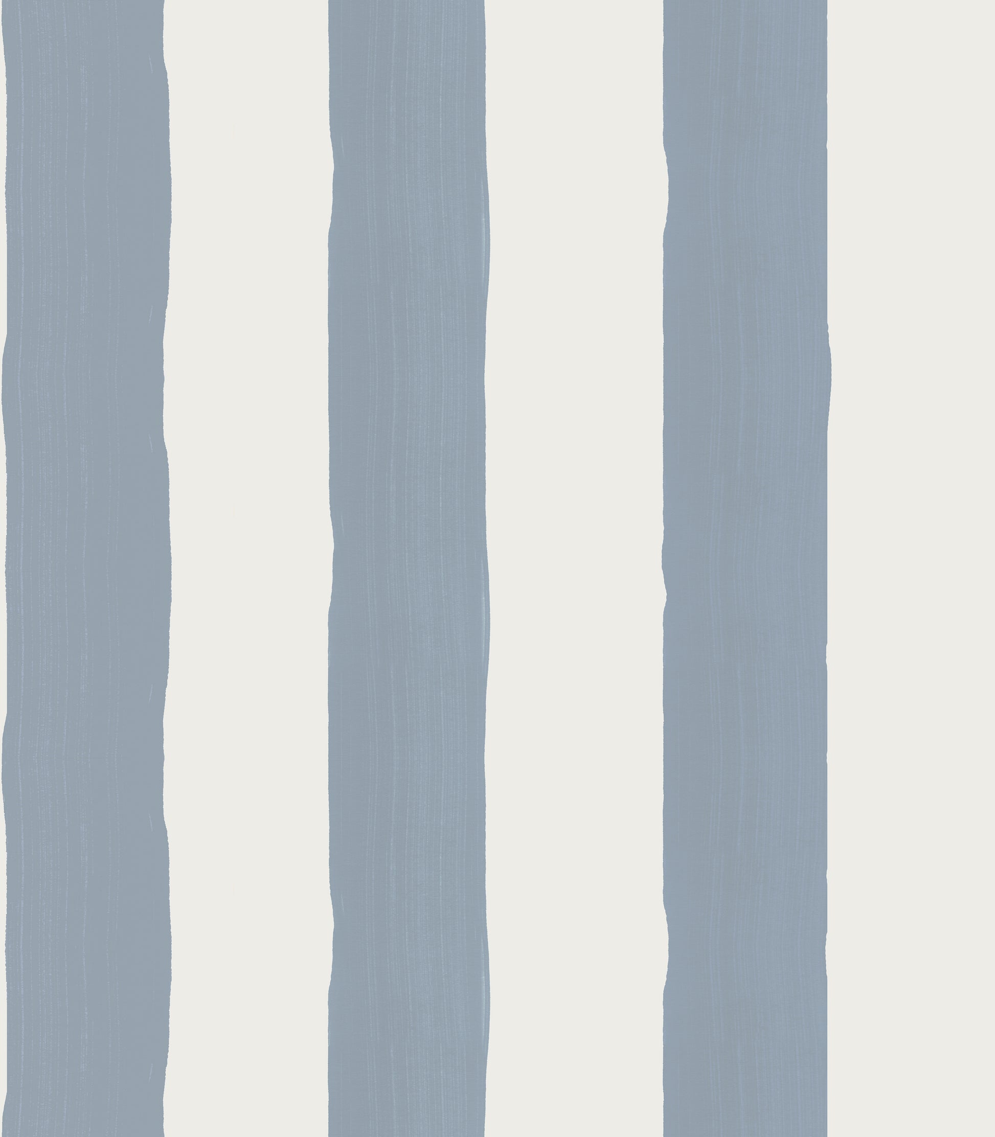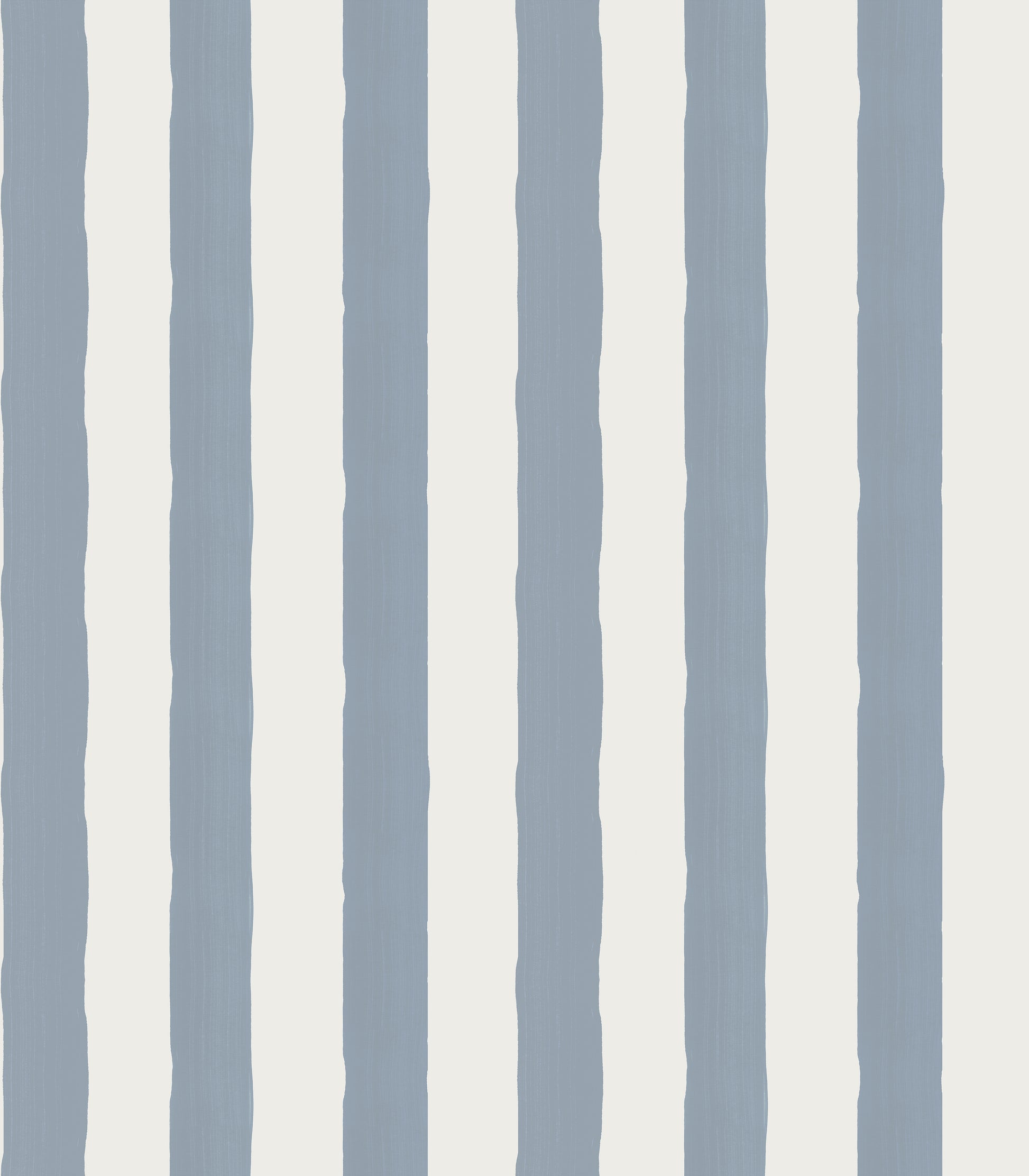 A classic stripe with a hand painted twist. Perfect Imperfect Stripe features soft blue brushstrokes that feel elevated yet effortless. Traditional without being stuffy, playful without being loud. Its organic texture and painterly edges add warmth of character to any space, from kids rooms to refined living areas.