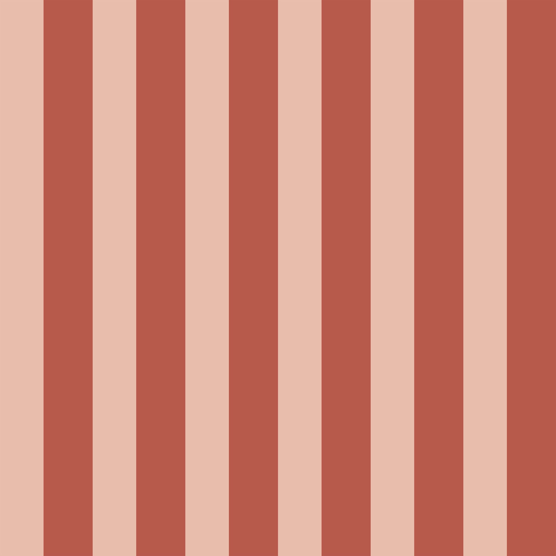 An elevated terra cotta and warm pink stripe that adds an eclectic touch to any space. Looks especially great mixed with other patterns for a chic look. Warm Clay, terra cotta stripe wallpaper, removable peel & stick and traditional options available. Classic striped pattern.